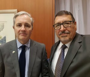 Ambassador Hashim Al-Dajani met with H.E. Paul Lehmann, the Australian Ambassador accredited to Ukraine, where he briefed him on the latest political developments on the Palestinian scene, particularly the situation in the Gaza Strip and the suffering of unarmed civilians as a result of the recent Israeli aggression.